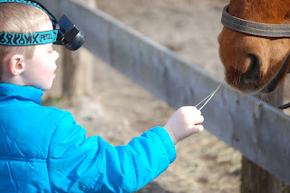 Gabe couldn't get his (big) head out of the hole. in this shot, my mom's behind the tomato wall, helping him.